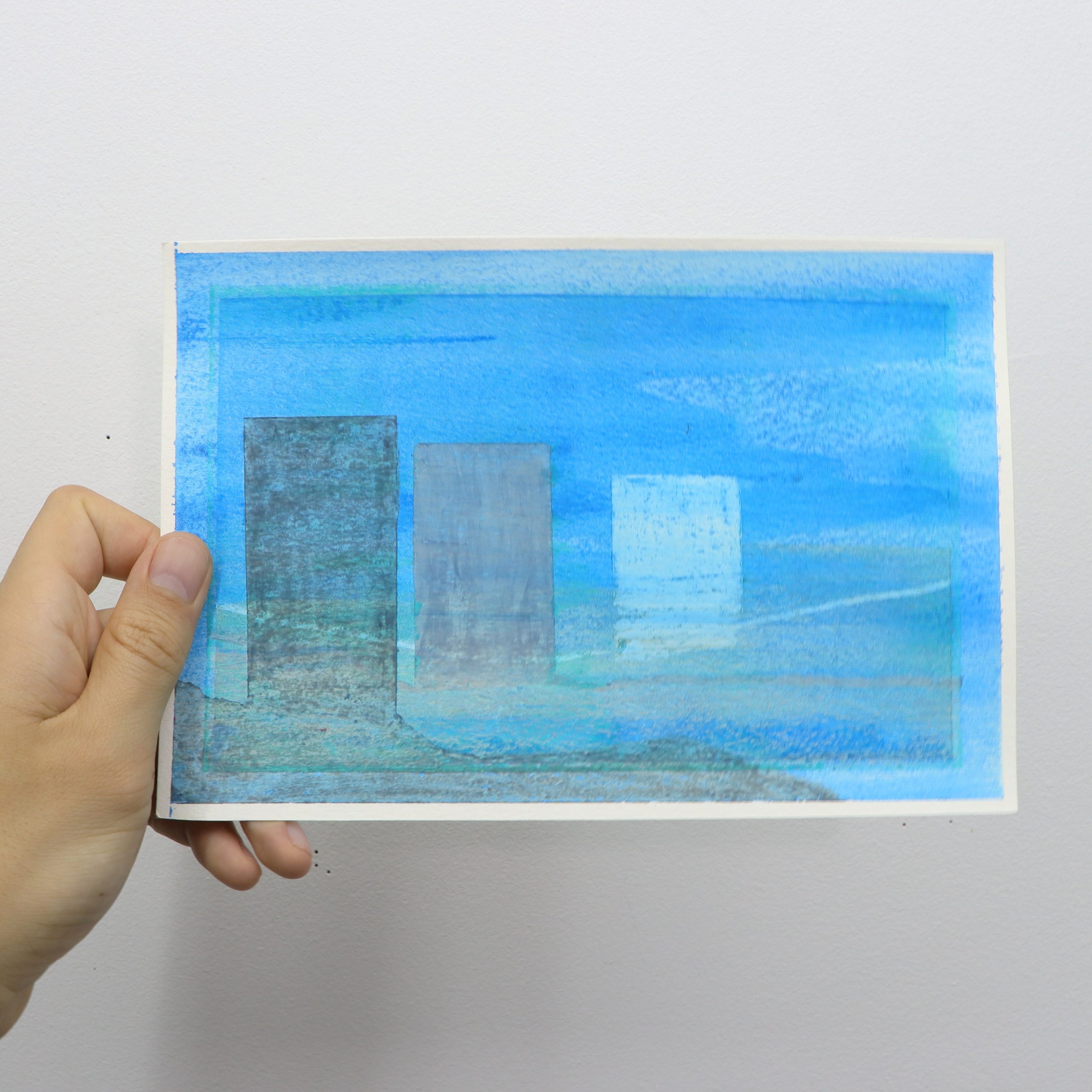 Experimental work connecting between the Primitives series and the exploration of colour in Glass Crayons. These sketch pieces are testing the qualities of mixing media with crayons.