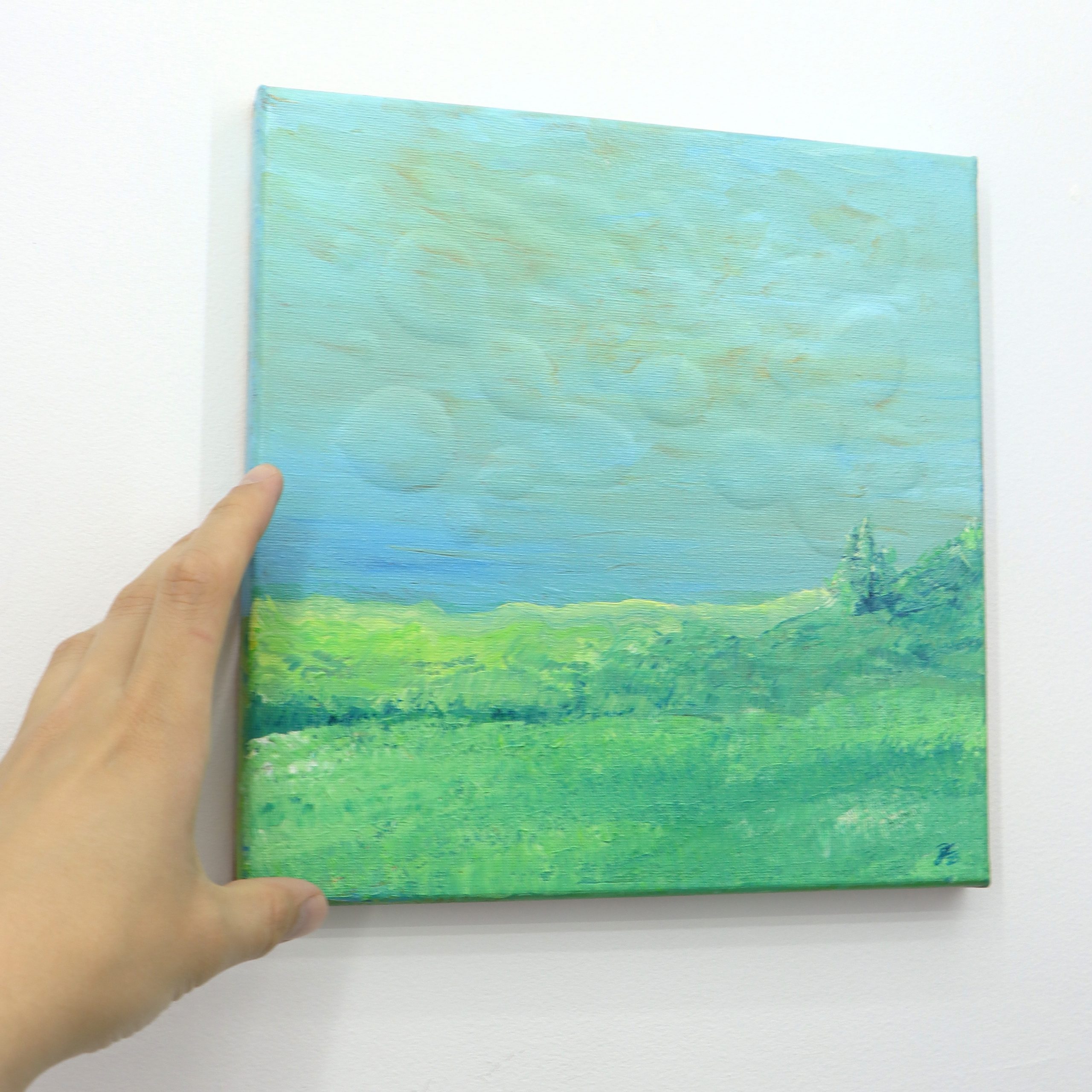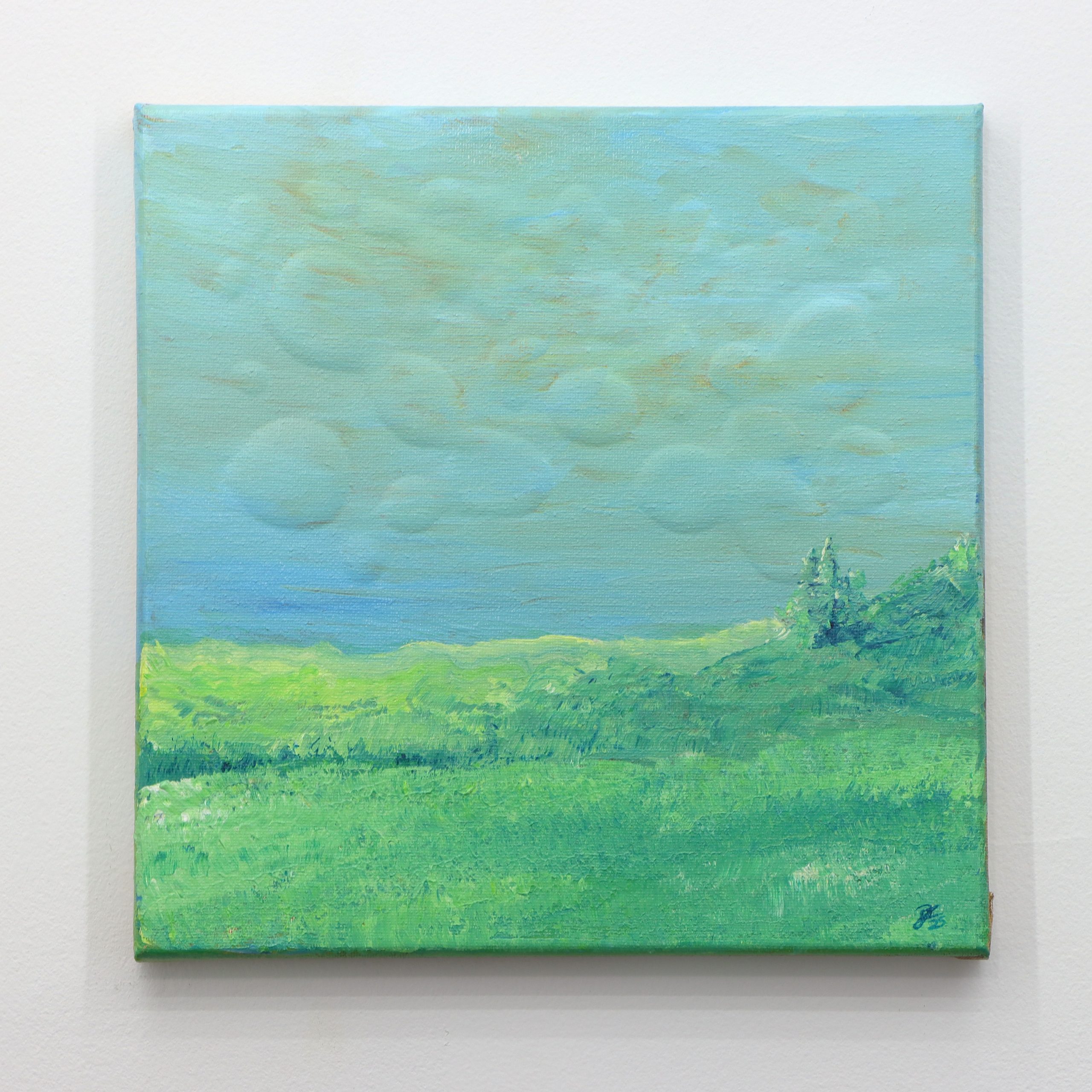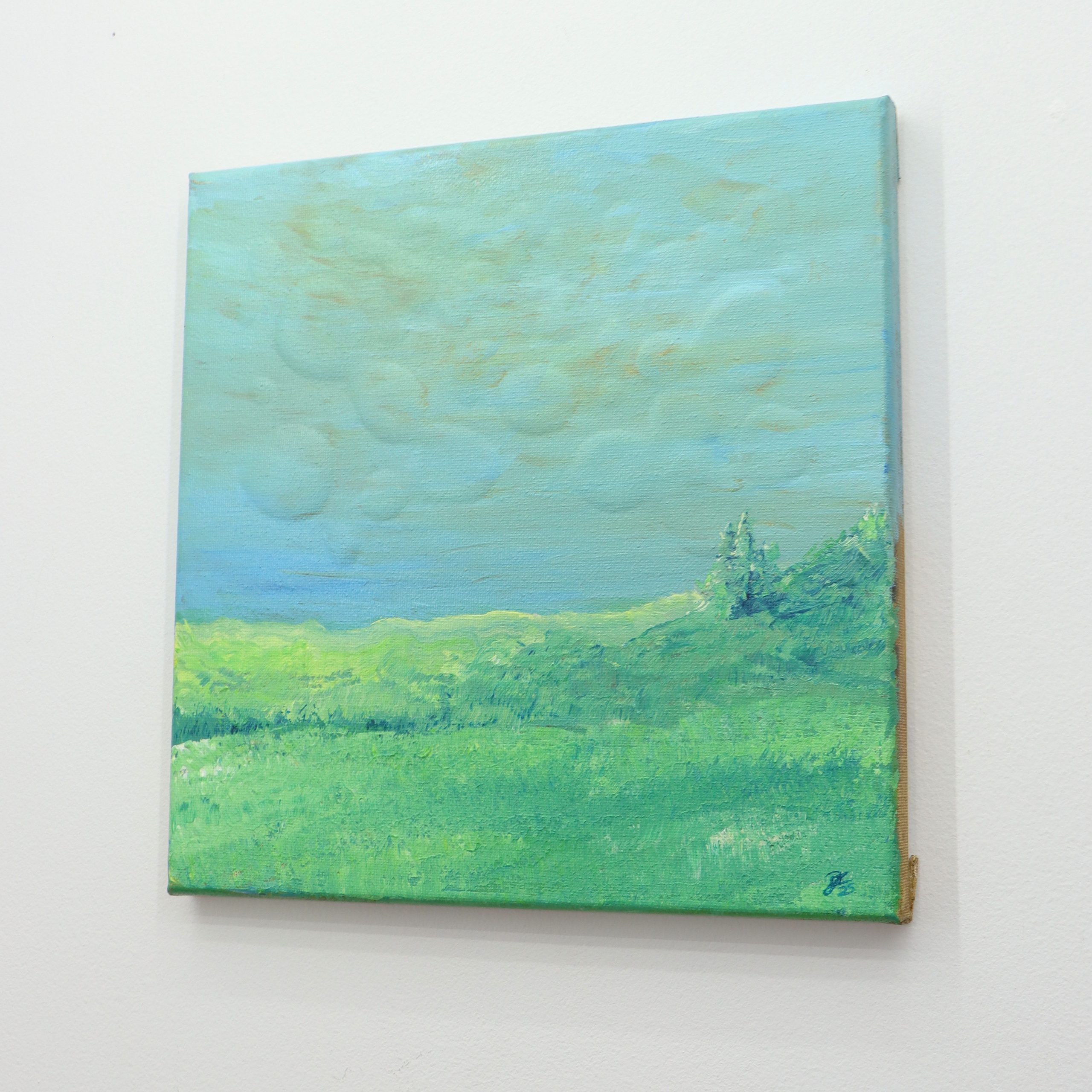 Clay pressed into the reverse side of the canvas creates a dreamy clouded landscape driving the background forward. The 3D element engages the viewer and invites them into the dreamy clouds.