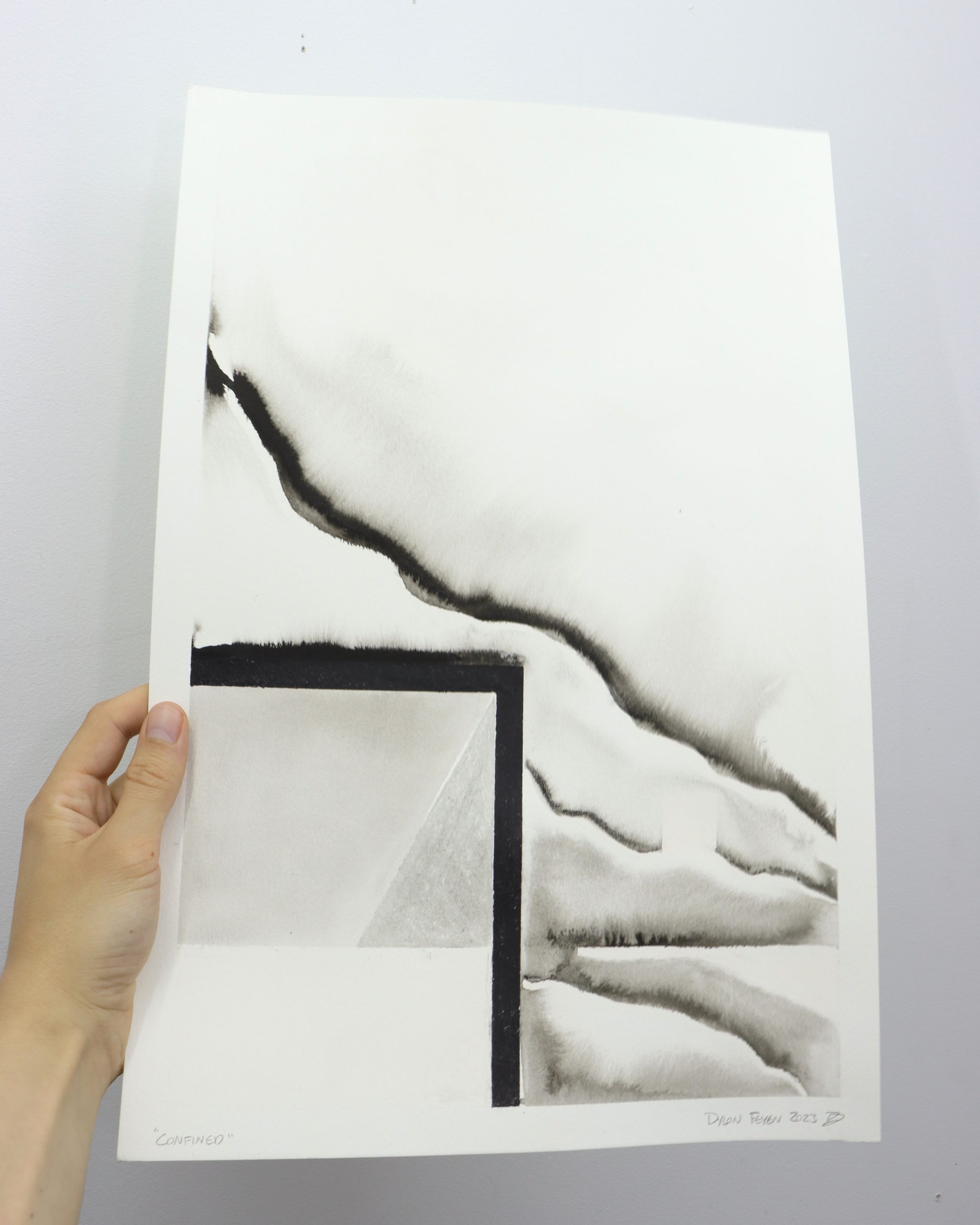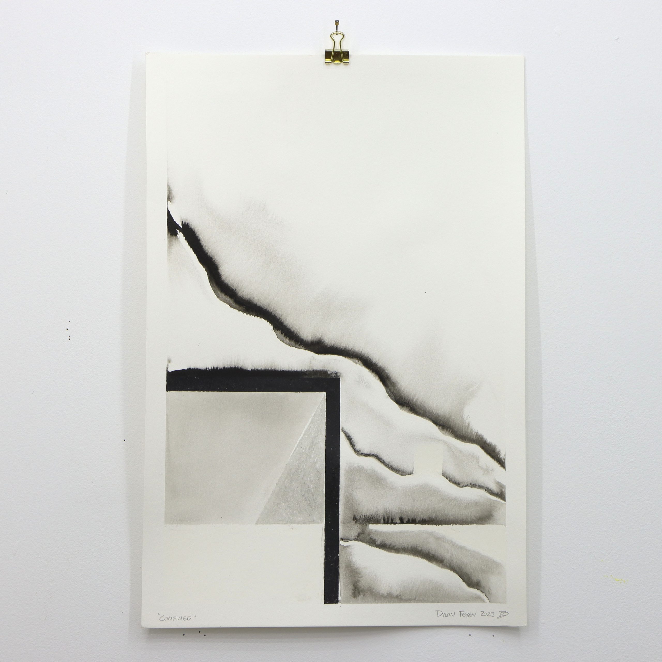 The Primitives series of works has Feyen returning to his expertise of constructed compositions. Using Crayons and India Ink these pieces utilize this unpredictable combination to reflect Feyen’s artistic nature. Each composition is crafted using Crayola crayons in methodical and planned marks. While a level of play occurs in the planning, each piece comes alive through the application of ink. Stark black India Ink is washed into the architectural scenes using water to pull ink through capillary action while also containing it behind the hydrophobic wax crayons.