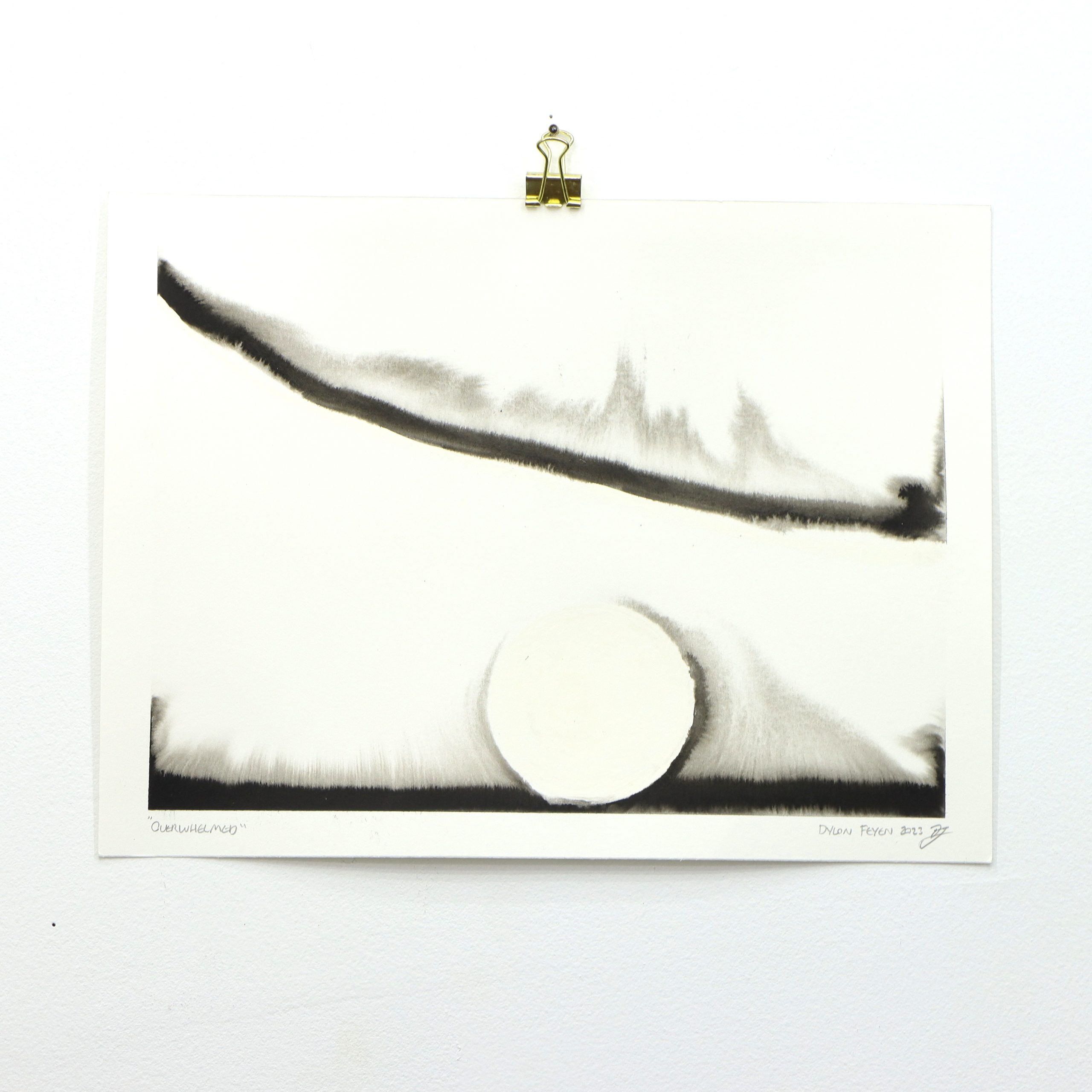 The Primitives series of works has Feyen returning to his expertise of constructed compositions. Using Crayons and India Ink these pieces utilize this unpredictable combination to reflect Feyen’s artistic nature. Each composition is crafted using Crayola crayons in methodical and planned marks. While a level of play occurs in the planning, each piece comes alive through the application of ink. Stark black India Ink is washed into the architectural scenes using water to pull ink through capillary action while also containing it behind the hydrophobic wax crayons.